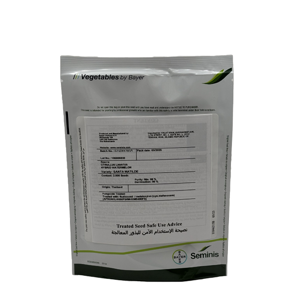 بذر هندوانه سانتا ماتیلده برند سمینس یکی از ارقام هیبرید F1 با عملکرد بالا و کیفیت میوه ممتاز است که برای کشت فضای باز در بهار و اوایل تابستان توصیه می‌شود. این رقم با تولید میوه‌هایی درشت، یکنواخت و با گوشت قرمز روشن و شیرینی بالا، بازارپسندی بسیار خوبی دارد و برای فروش در میادین و حمل‌ونقل طولانی‌مدت گزینه‌ای ایده‌آل محسوب می‌شود.